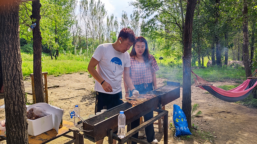 烧烤开始了 曹总亲自上阵