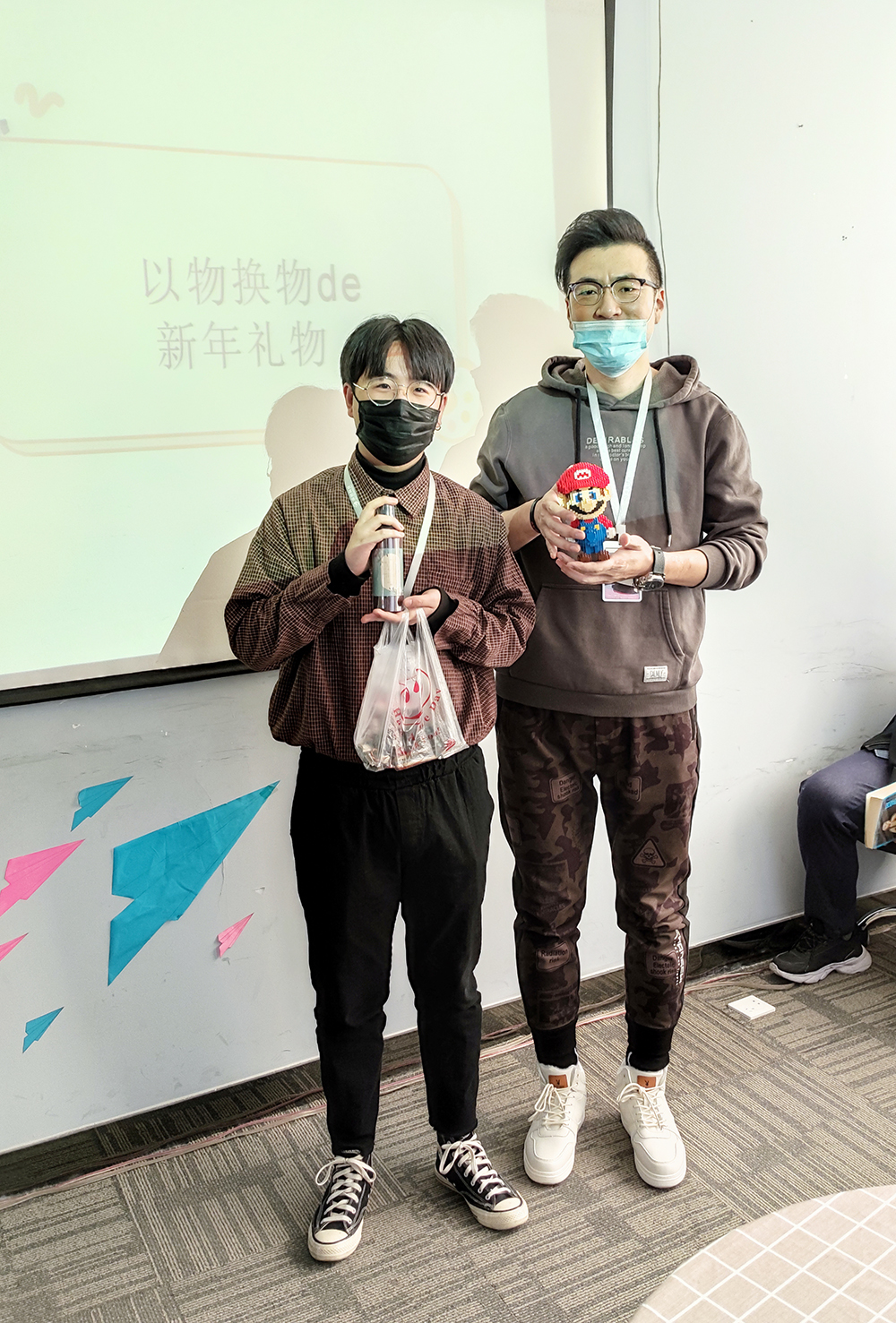 一次比较新意的早会活动,大家拿出自己有意义或闲置的物品作为新年礼物与别人交换,不但增加了同事间的理解与信任,还有传递祝福与期盼!